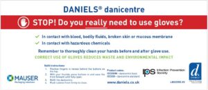 The DANIELS® danicentre label has been updated in collaboration with the Infection Prevention Society (IPS) to support the appropriate use of gloves in clinical settings. The updated label includes a bold red prompt asking “Stop, do you really need to use gloves?” alongside guidance on when glove use is necessary.