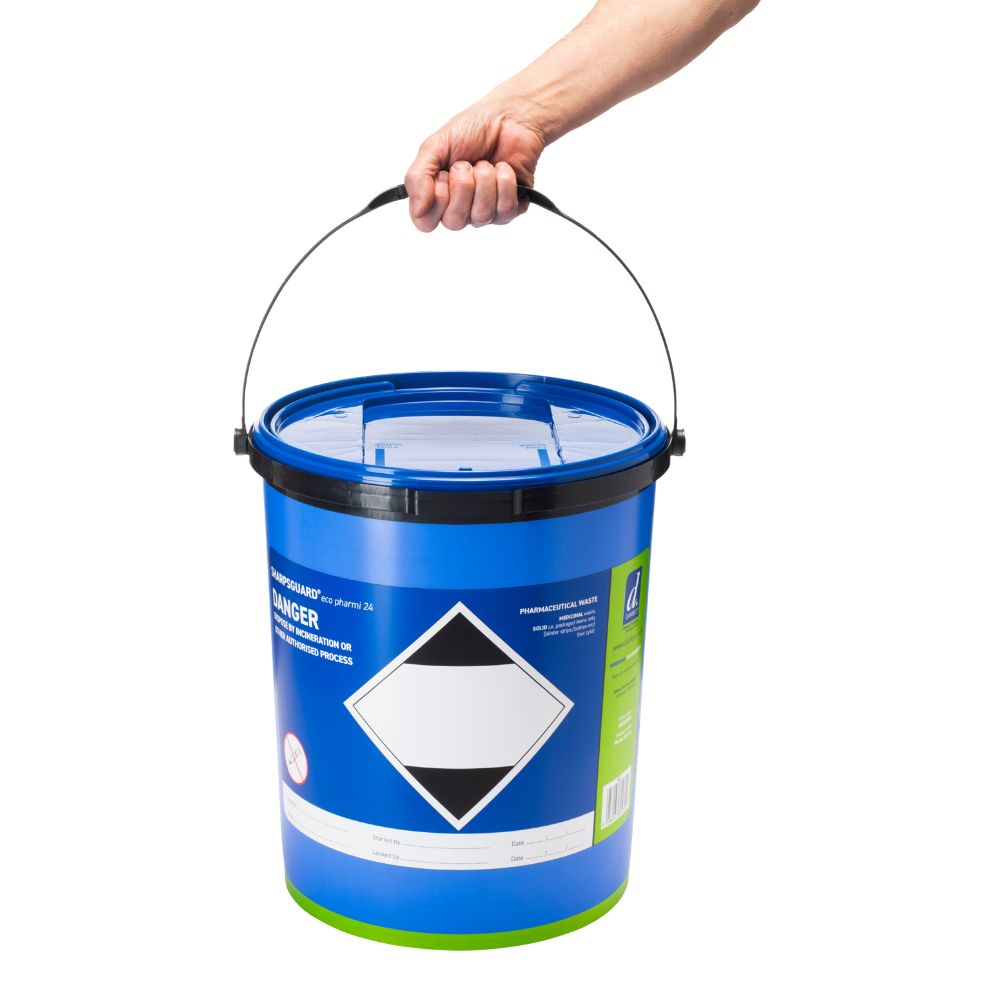 Our SHARPSGUARD® eco pharmi 24 is an ideal general-purpose waste container for the disposal of pharmaceutical waste in original packaging, such as unused pills, no sharps. It has a hinged door mechanism minimising both handling and contamination.